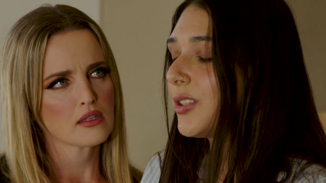 43 year old stepmom Julia North asked her 19 year old stepdaughter Mitzi X to make her come