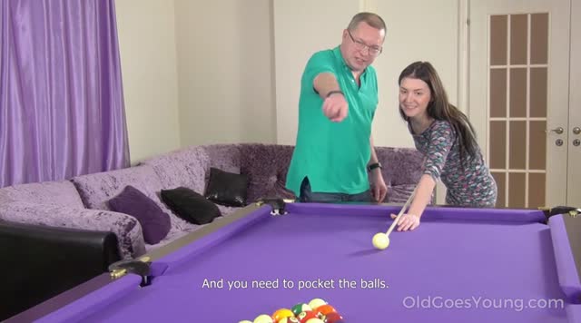 Experienced pool player pockets the balls and his hard dick